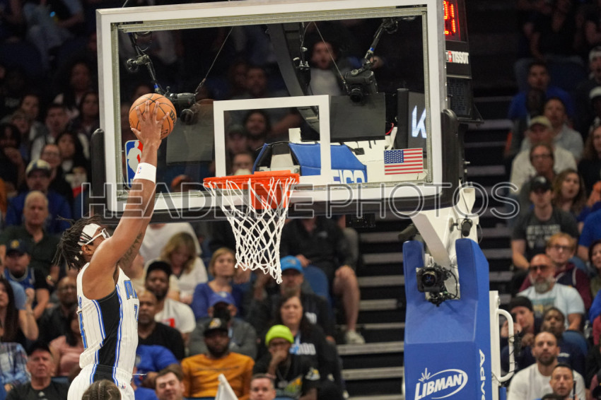 Orlando, Florida, USA, March 9, 2023, Orlando Magic forward Paolo Banchero #5 makes a dunk in the first half at the Amway Center. (Photo Credit: Marty Jean-Louis)