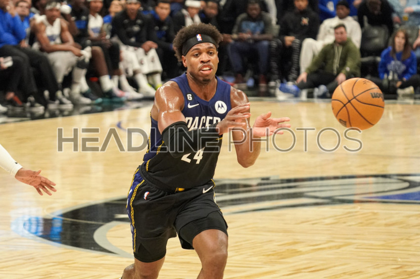 Orlando, Florida, USA, January 25, 2023, Indiana Pacers guard Buddy Hield #24 makes a pass in the first half at the Amway Center. (Photo Credit: Marty Jean-Louis)