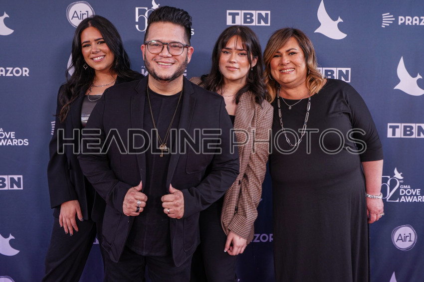 Nashville, Tennessee, USA, October 19, 2021. Music Group Blest walk the Red Carpet during the 52nd Annual GMA Dove Awards at Allen Arena.