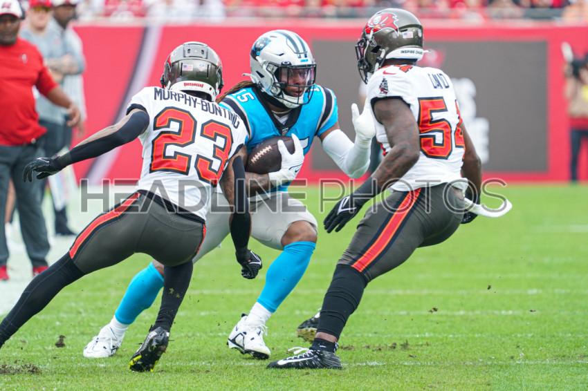 Tampa Bay, Florida, USA, January 1, 2023, Carolina Panthers Wide Receiver Laviska Shenault Jr #15 makes a run after receiving a pass at Raymond James Stadium. (Photo Credit: Marty Jean-Louis)
