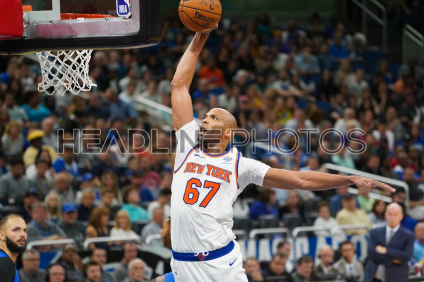 New York Knicks Forward Taj Gibson makes a dunk at the Amway Center in Orlando Forida on Wednesday, October 30, 2019. Photo Credit: Marty Jean-Louis