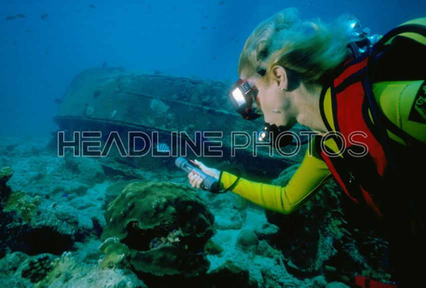 Young women at snorkeling in the tropical wate