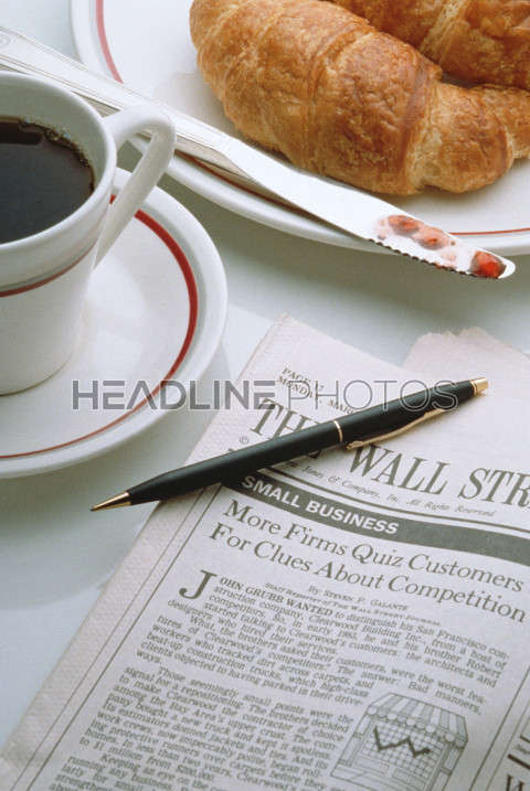Morning cup of coffee and croissant for breakfast