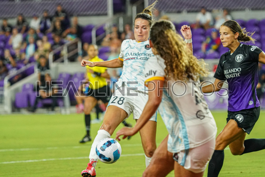 Orlando, Florida, USA, July 8, 2022, Houston Dash player Cali Farquharson #28 makes a pass in the second half at Exploria Stadium. (Photo Credit: Marty Jean-Louis)