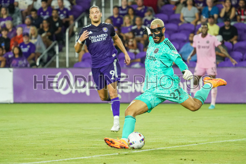 Orlando, Florida, USA, July 9, 2022, Inter Miami Goalkeeper Drake Callender #27 makes a goal kick in the first half at Exploria Stadium. (Photo Credit: Marty Jean-Louis)