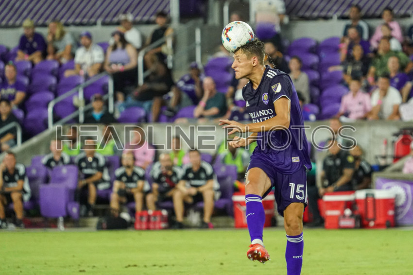 Orlando, Florida, USA, July 9, 2022, Orlando City SC defender Rodrigo Schlegel #15 makes a header in added time at Exploria Stadium. (Photo Credit: Marty Jean-Louis)