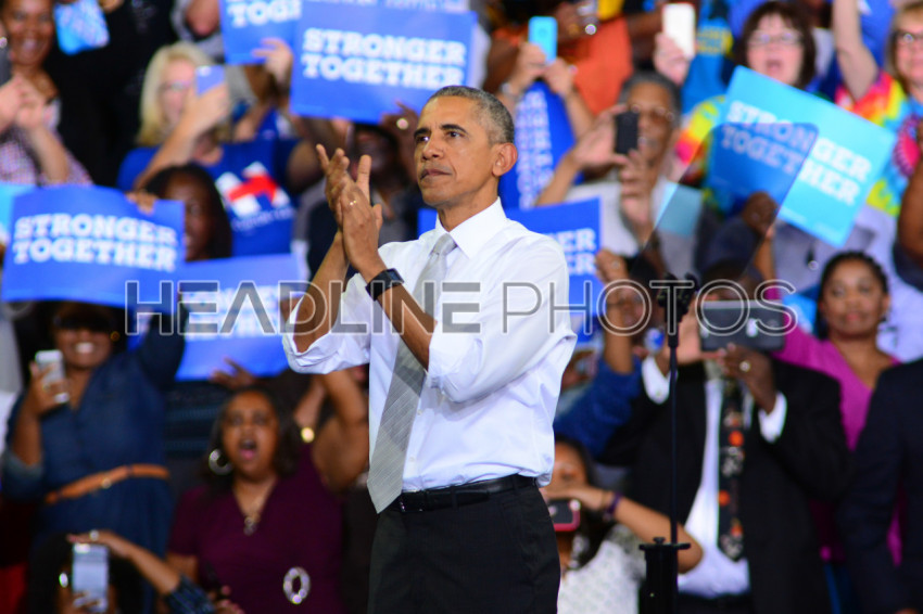 President Barack Obama host a Campaign Rally for Presidential Candidate Hillary Clinton at CFE Arena in Orlando Florida on October 28, 2016. Photo Credit: Marty Jean-Louis