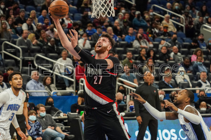 Orlando, Florida, USA, January 17, 2022, Portland Trail Blazers Center Jusuf Nurkic #27 makes a layup during the first half at the Amway Center. (Photo Credit: Marty Jean-Louis)