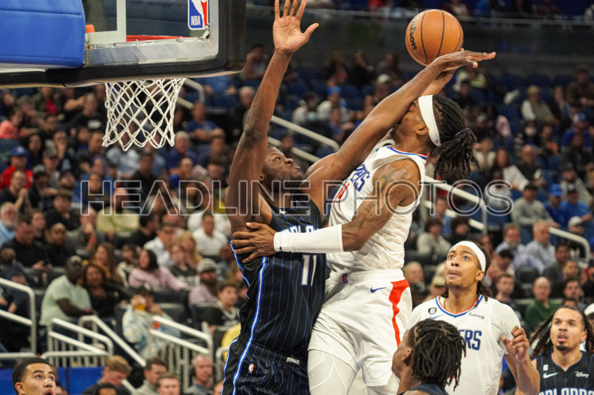 Orlando, Florida, USA, December 7, 2022, Los Angeles Clippers guard Terance Mann #14 attempt to make a dunk but is fouled by Mo Bamba #11 during the second half at the Amway Center. (Photo Credit: Marty Jean-Louis)