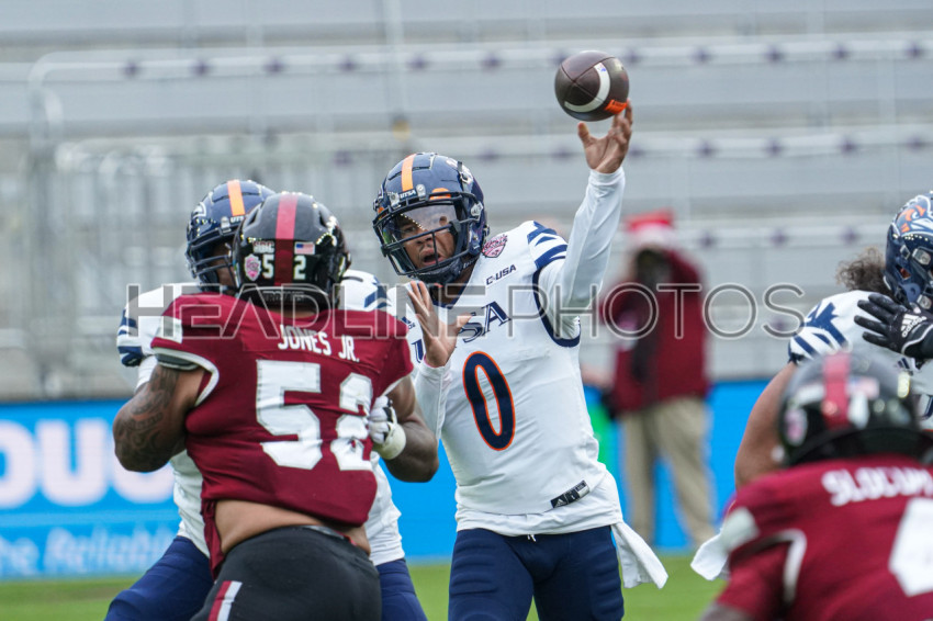 Orlando, Florida, USA, December 16, 2022, USTA Roadrunners Quarterback Frank Harris #0 makes a pass in the first half at Exploria Stadium. (Photo Credit: Marty Jean-Louis)