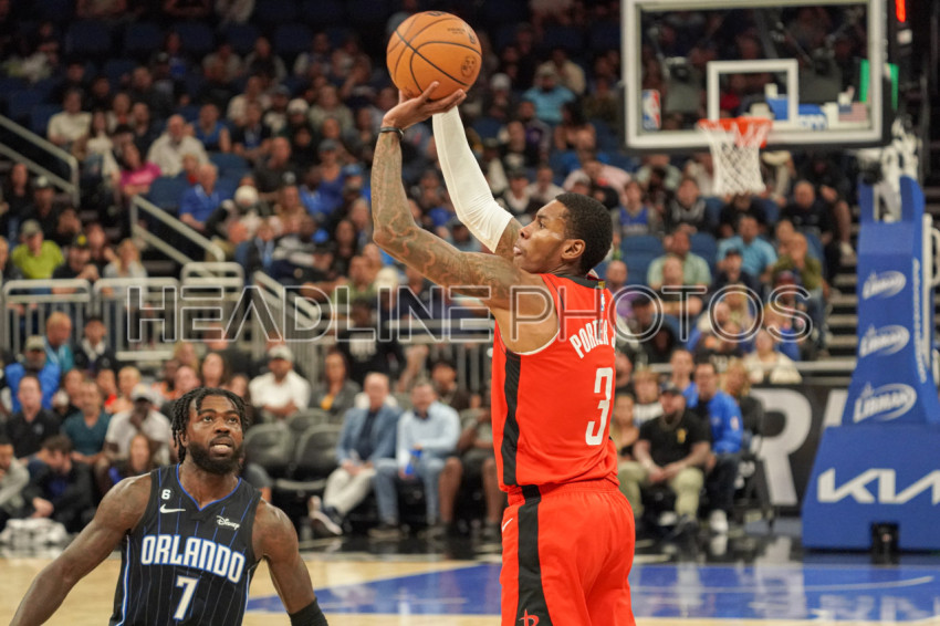 Orlando, Florida, USA, November 7, 2022, Houston Rockets shooting Guard Kevin Porter Jr. #3 shoots a three piont shot during the first half at the Amway Center. (Photo Credit: Marty Jean-Louis)