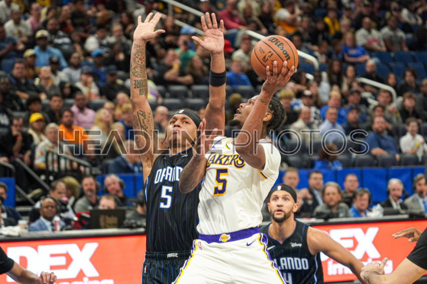 Orlando, Florida, USA, November 4, 2023, Los Angeles Lakers forward Cam Reddish #5 attempt to score at the Amway Center. (Photo Credit: Marty Jean-Louis)
