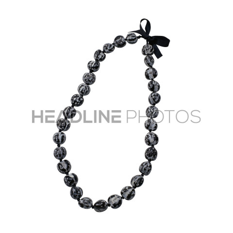 Hawaiian Lei Necklace of Black Kukui Nuts on white background