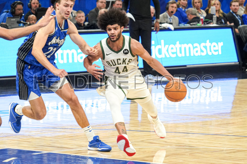 Orlando, Florida, USA, November 11, 2023, Milwaukee Bucks guard Andre Jackson #44 pushes forward at the Amway Center. (Photo Credit: Marty Jean-Louis)