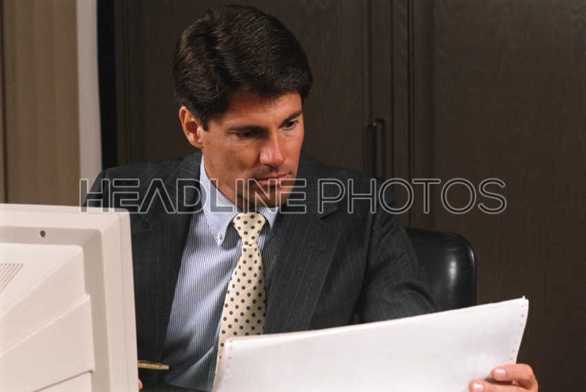 The man is working in the office