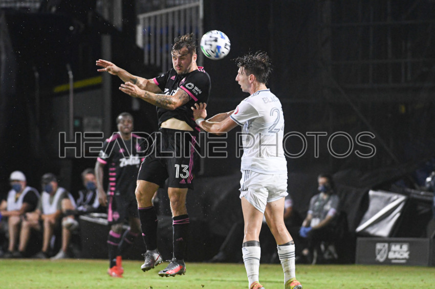 Seattle Sounders FC forward Morris, Jordan #13 wins the header during the MLS is Back Tournament at ESPN Wild World of Sports in Orlando Florida on Monday July 27, 2020. Photo Credit: Marty Jean-Louis