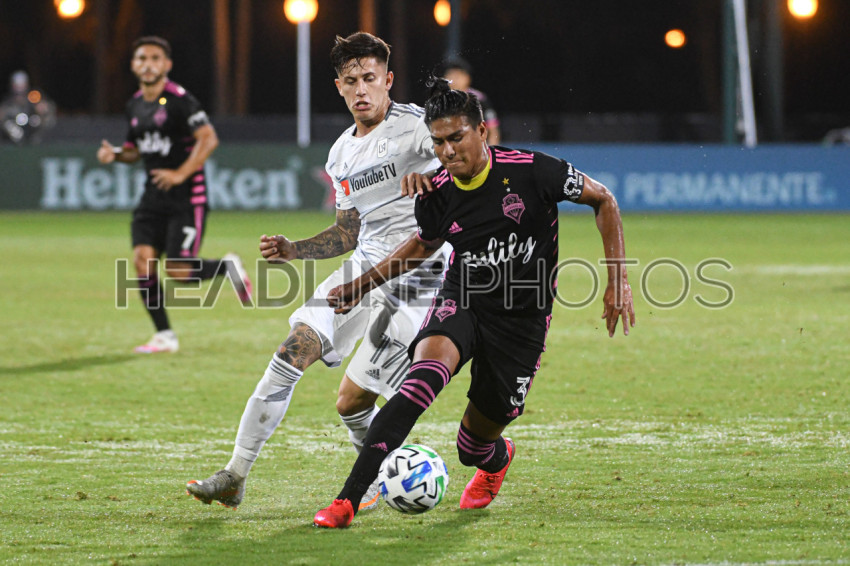 Seattle Sounders FC defender Arreaga, Xavier #3 fight to keep the ball during the MLS is Back Tournament at ESPN Wild World of Sports in Orlando Florida on Monday July 27, 2020. Photo Credit: Marty Jean-Louis