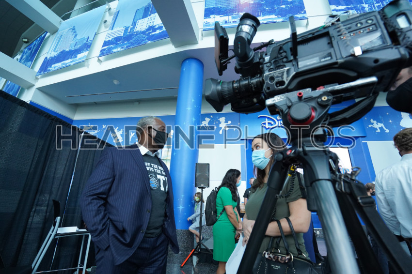 Orlando Magic CEO Alex Martins, Orange County Supervisor of Elections Bill Cowles, Orange County Mayor Jerry Demings, City of Orlando Mayor Buddy Dyer, announces Amway Center to open as early voting site for Orange County voters at the amway center in Orlando Florida USA on Wednesday September 2, 2020. Photo Credit: Marty Jean-Louis
