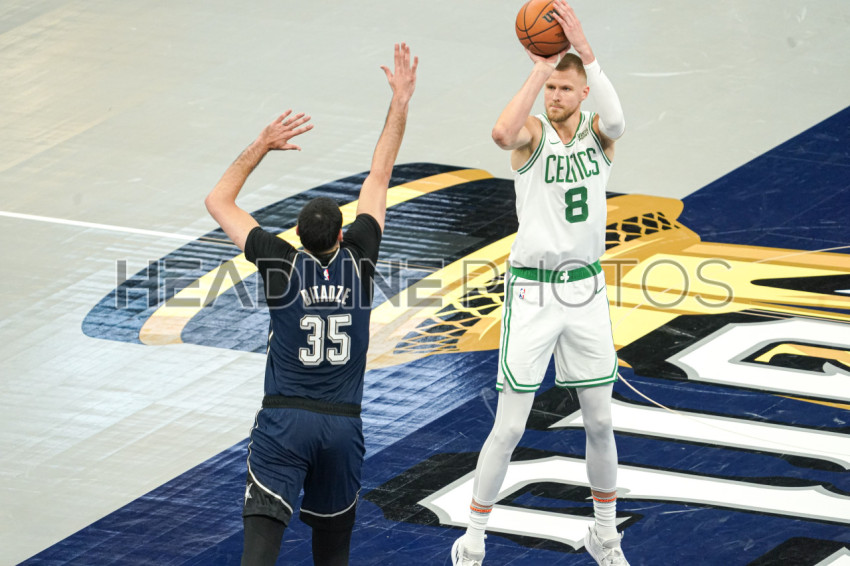 Orlando, Florida, USA, November 24, 2023, Boston Celtics player Kristaps Porzingis #8 attempt to make a basket at the Amway Center. (Photo Credit: Marty Jean-Louis)