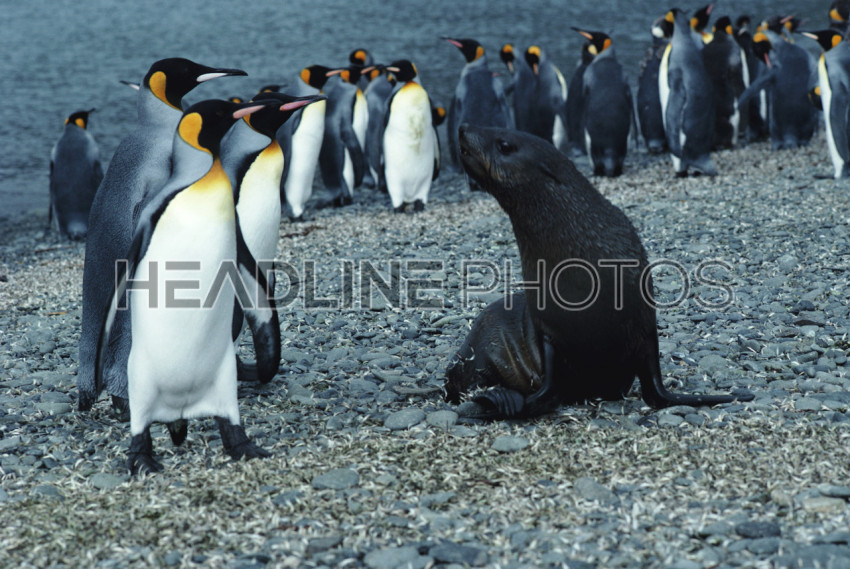 Fur seal and king penguin stand