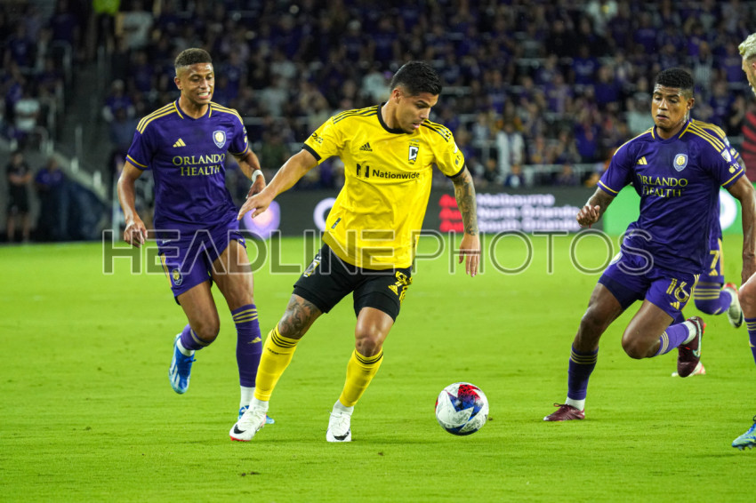 Orlando, Florida, USA, November 25, 2023, Columbus Crew player Cucho Hernandez #9 rushes forward at Exploria Stadium. (Photo Credit: Marty Jean-Louis)