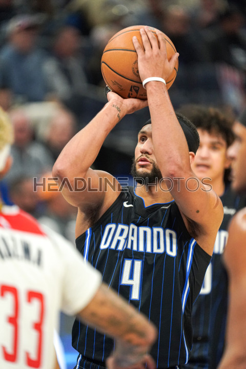 Orlando, Florida, USA, November 29, 2023, Orlando Magic guard Jalen Suggs #4 shoots a free throw in the first half at the Amway Center. (Photo Credit: Marty Jean-Louis)