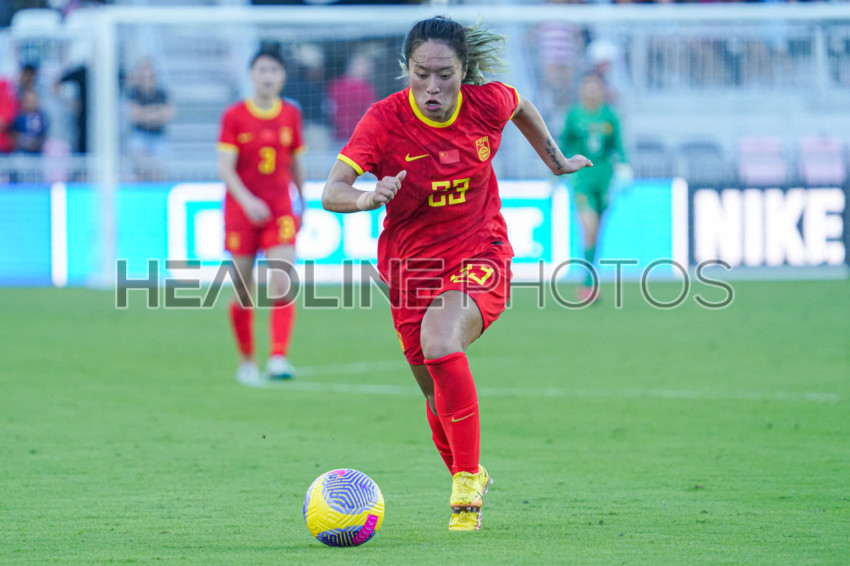 Fort Lauderdale, USA, December 2, 2023, China PR midfielder Tang Jiali #23 controls the ball in a friendly match at DRV PNK Stadium. (Photo Credit: Marty Jean-Louis)