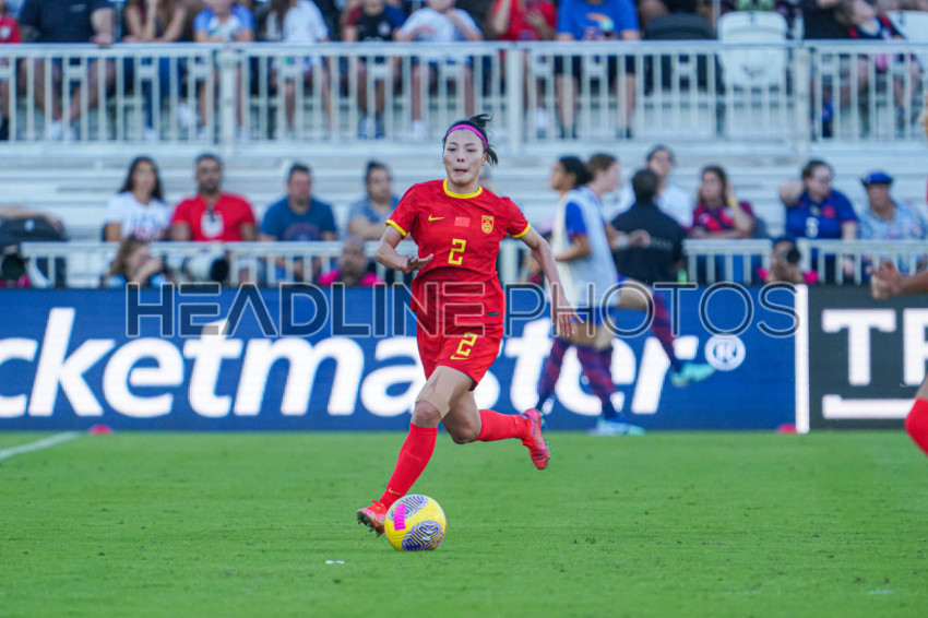 Fort Lauderdale, USA, December 2, 2023, China PR defender Li Mengwen #2 runs. up field in a friendly match at DRV PNK Stadium. (Photo Credit: Marty Jean-Louis)