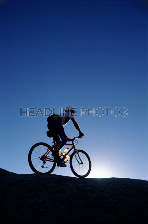 Silhouette of the cyclist riding