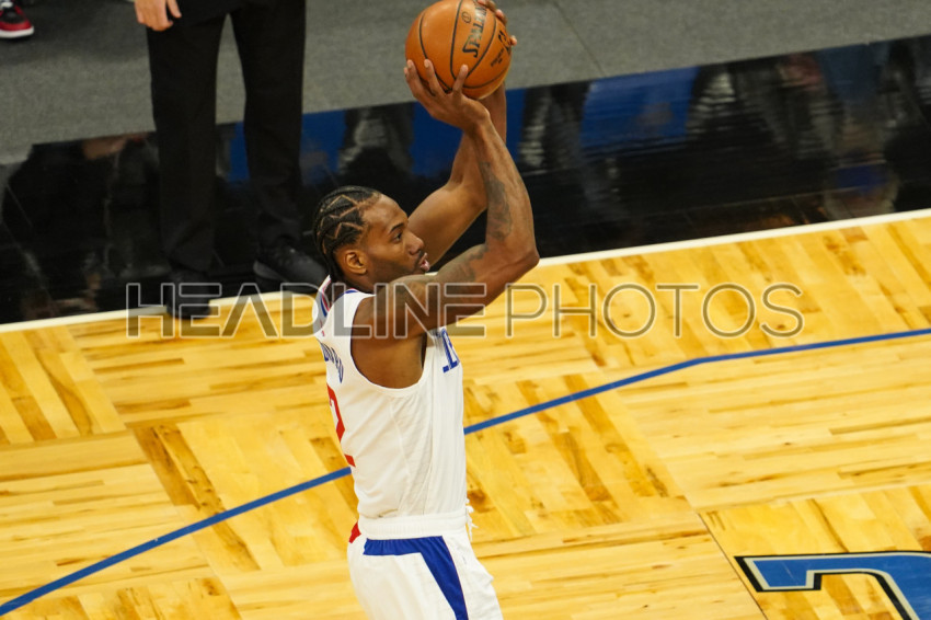 Orlando, Florida, USA, January 29, 2021, Los Angeles Clippers player Kawhi Leonard #2 makes a shot during the game at the Amway Center (Photo Credit: Marty Jean-Louis)