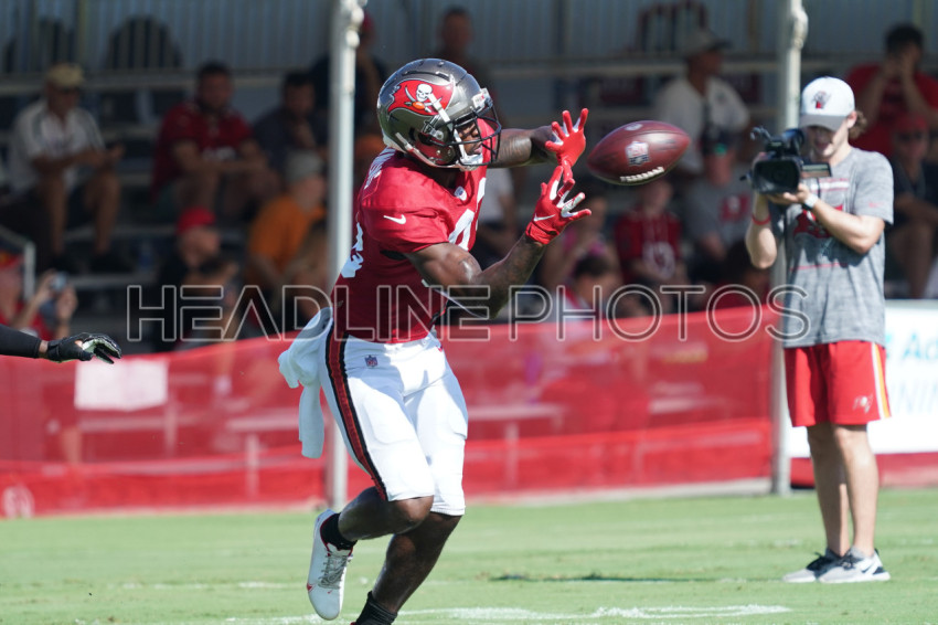 Tampa, Florida, USA, August 19, 2021, Tampa Bay Buccaneers Wide Receiver T.J. Simmons #83 makes a catch during Training Camp at AdventHealth Training Center\n. 4(Photo Credit: Marty Jean-Louis)