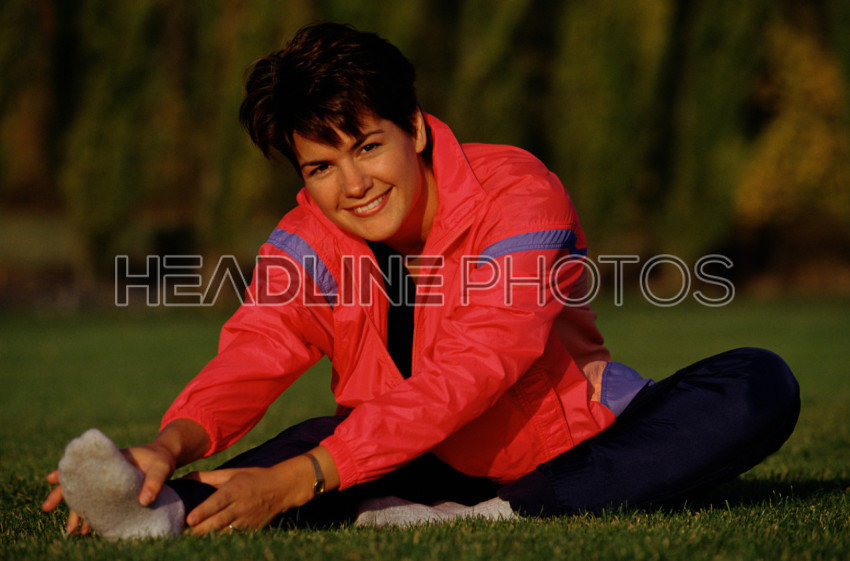 Confident Sportswear Stretching Leg Outdoors