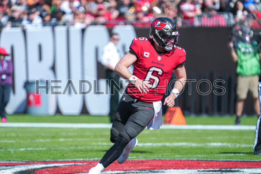 Tampa Bay, Florida, USA, December 31, 2023, Tampa Bay Buccaneers quarterback Baker Mayfield #6 at Raymond James Stadium. (Photo Credit: Marty Jean-Louis)