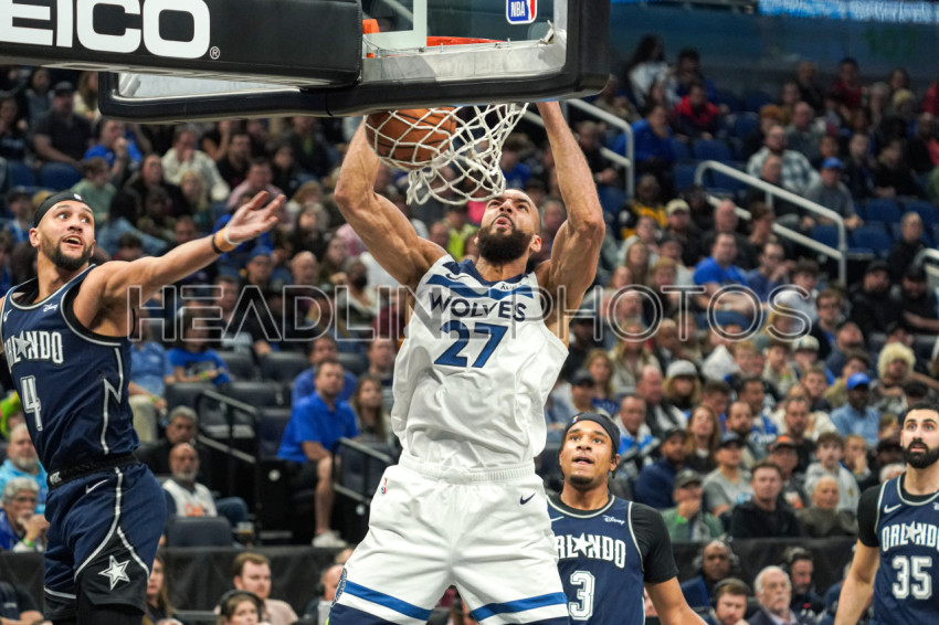 Orlando, Florida, USA, January 9, 2024, Minnesota Timberwolves center Rudy Gobert #27 makes a dunk at the Amway Center. (Photo Credit: Marty Jean-Louis)