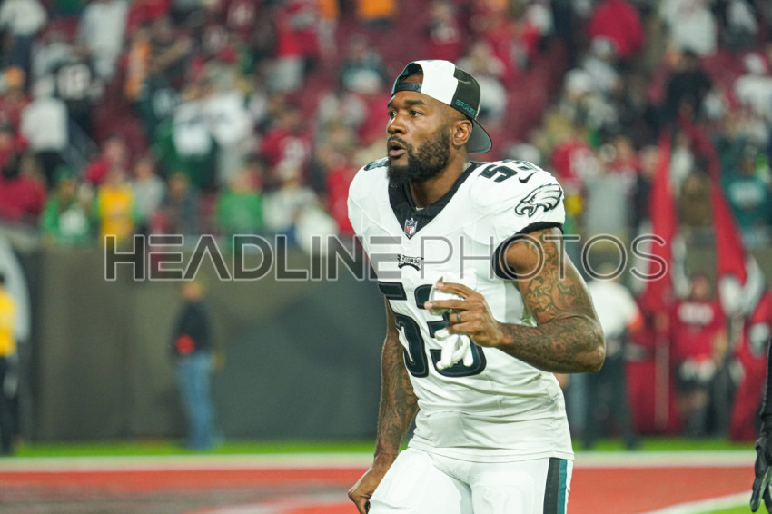 Tampa Bay, Florida, USA, January 15, 2024, Philadelphia Eagles player Shaquille Leonard #53 runs to the locker after the game at Raymond James Stadium. (Photo Credit: Marty Jean-Louis)