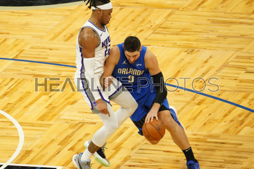 Orlando, Florida, USA, January 27, 2021, Orlando Magic player Nikola Vucevic #9 pushes to get close to the basket during the game against the Sacramento Kings at the Amway Center (Photo Credit: Marty Jean-Louis)