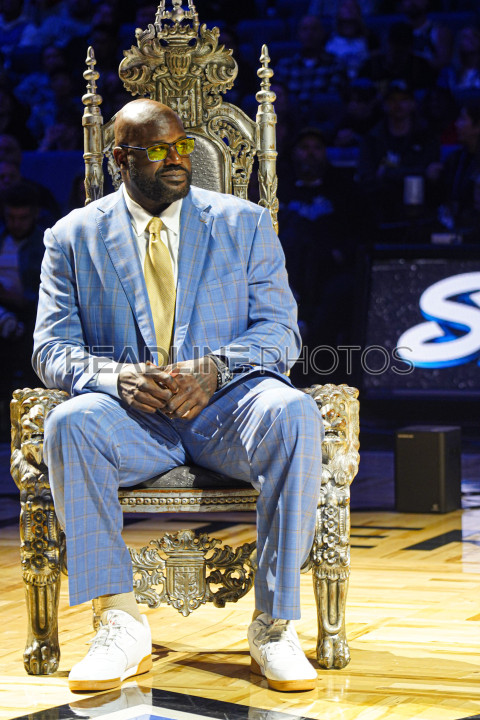 Orlando, Florida, USA, February 13, 2024, Shaquille O'Neal sitting for his Jersey Retirement Ceremony at the Kia Center. (Photo Credit: Marty Jean-Louis)