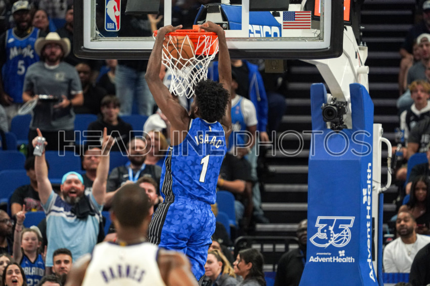 Orlando, Florida, USA, March 23, 2024, Orlando Magic forward Jonathan Isaac #1 makes a dunk at the Kia Center. (Photo Credit: Marty Jean-Louis)