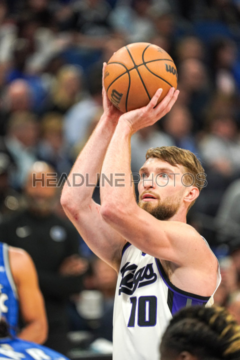 Orlando, Florida, USA, March 23, 2024, Sacramento Kings center Domantas Sabonis #10 attempt to make a basket with a free throw during the first half at the Kia Center. (Photo Credit: Marty Jean-Louis)