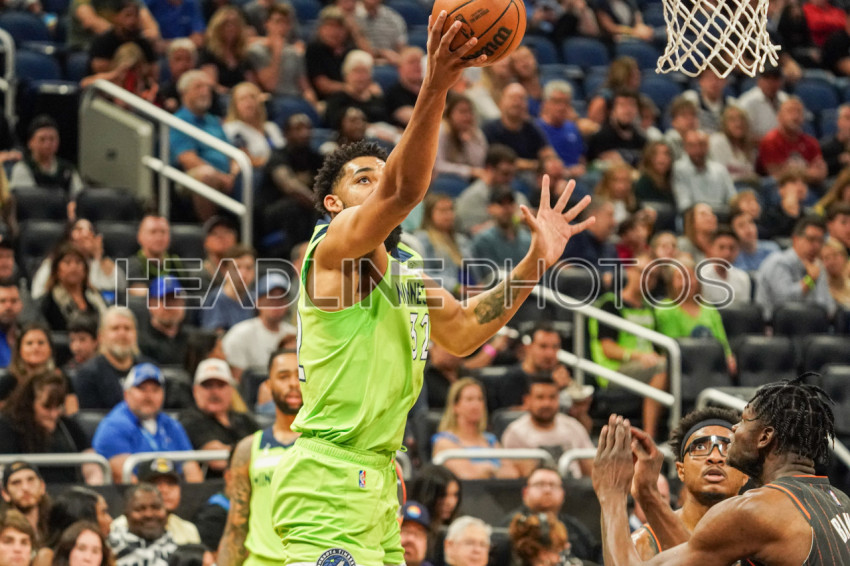 Orlando, Florida, USA, March 11, 2022, Minnesota Timberwolves Center Karl-Anthony Towns #32 makes a layup during the first half at the Amway Center. (Photo Credit: Marty Jean-Louis)