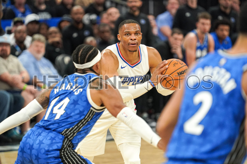 Orlando, Florida, USA, March 29, 2024, Los Angeles Clippers guard Russell Westbrook #0 look to make a pass at the Kia Center. (Photo Credit: Marty Jean-Louis)