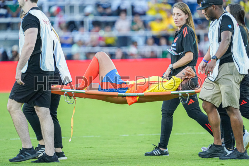 Orlando, Florida, April 6, 2024, Colombia forward Catalina Usme #11 is being carried out after getting injured in the second half in a Friendly Match at Inter&Co Stadium. (Photo Credit: Marty Jean-Louis)