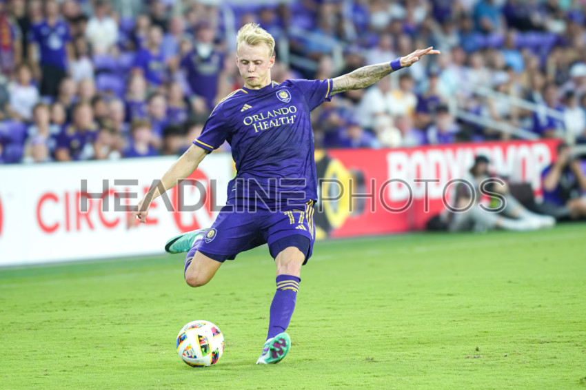Orlando, Florida, USA, May 25, 2024, Orlando City SC midfielder Dagur Thorhallsson #17 makes a pass at Inter&Co Stadium. (Photo Credit: Marty Jean-Louis)