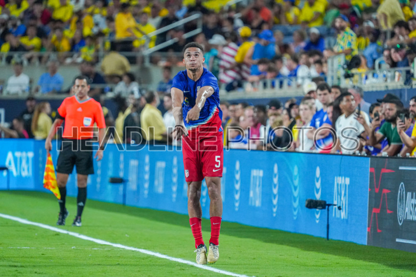 Orlando, Florida, June 12, 2024, USA player Antonee Robinson #5 makes a throw at Camping World Stadium. (Photo Credit: Marty Jean-Louis)