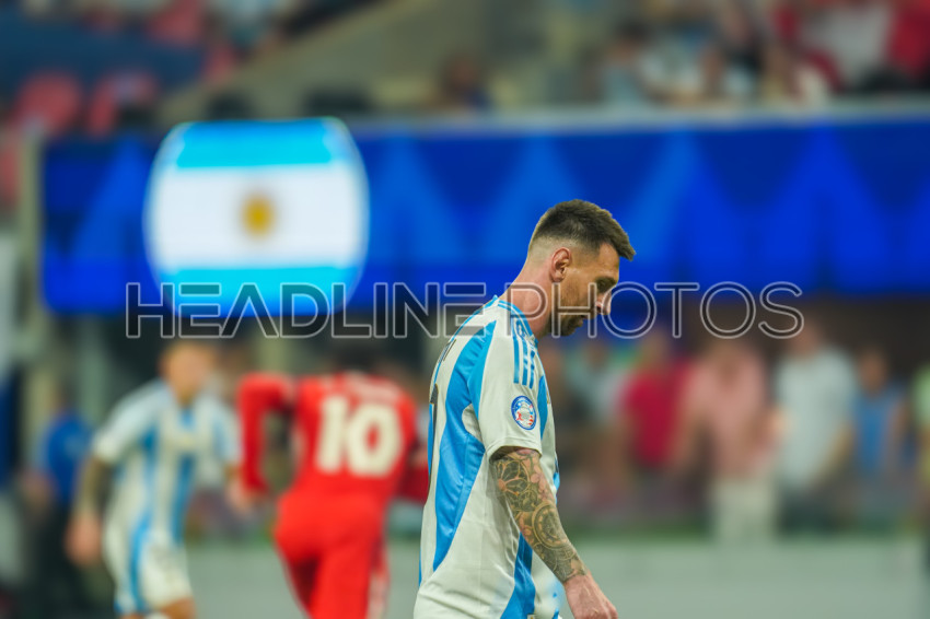 Atlanta, Georgia, USA, June 20, 2024, Argentina forward Lionel Messi #10 with his head down during the 2024 Copa America at Mercedes-Benz Stadium. (Photo Credit: Marty Jean-Louis)
