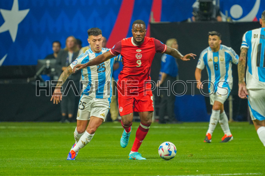 Atlanta, Georgia, USA, June 20, 2024, Canada forward Cyle Larin #9 runs across the field during the 2024 Copa America at Mercedes-Benz Stadium. (Photo Credit: Marty Jean-Louis)