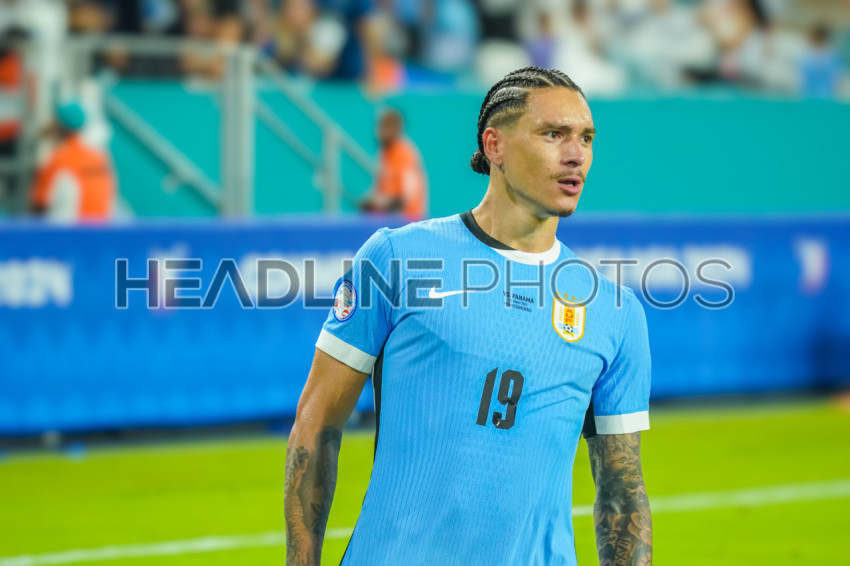 Miami Gardens, Florida, USA, June 20, 2024, Uruguay forward Darwin Núñez #19 celebrate after scoring during the 2024 Copa America at the Hard Rock Stadium. (Photo Credit: Marty Jean-Louis)