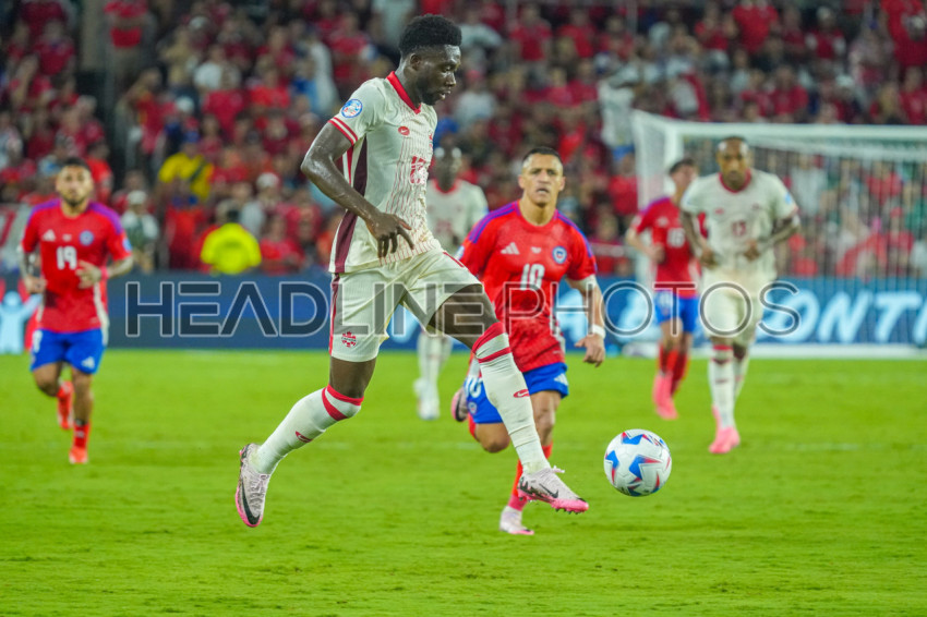 Orlando, Florida, USA, June 20, 2024, Canada player Alphonso Davies #19 runs forward during the 2024 Copa America at Inter&Co Stadium. (Photo Credit: Marty Jean-Louis)