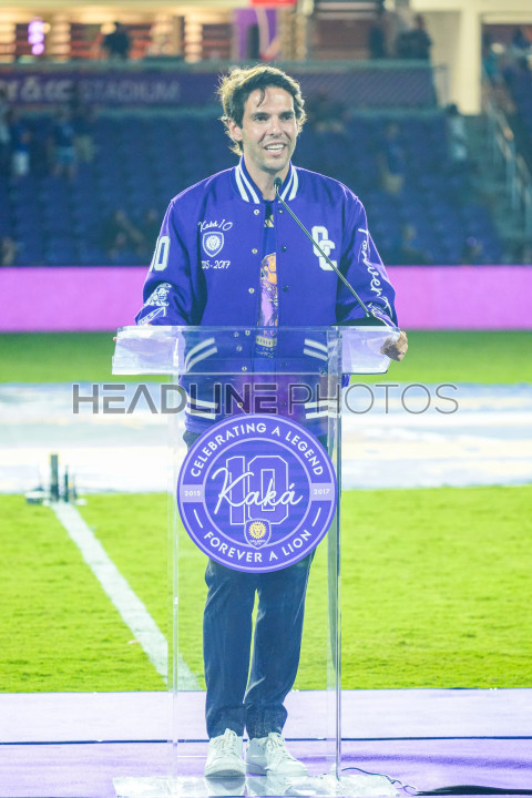Orlando, Florida, USA, July 6, 2024, Ricardo Kaka speaking during the Legends Terrace Induction ceremony at Inter&Co Stadium. (Photo Credit: Marty Jean-Louis)