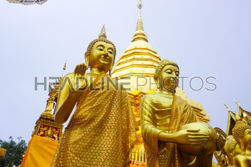 Golden statues at The gold Temple in Wat Prathat Doi Suthep, Thailand